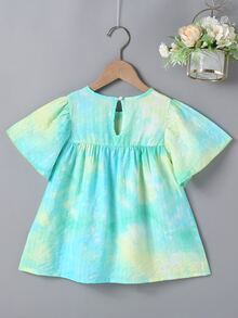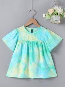 Toddler Girls Tie Dye Keyhole Back Blouse