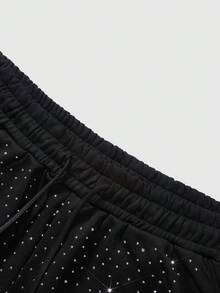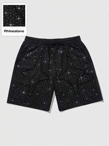 Street Life Unisex Casual Shorts With American Street Style Star Rhinestone Applique & Spray Paint Horse Print