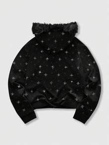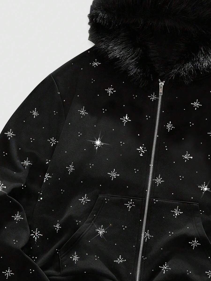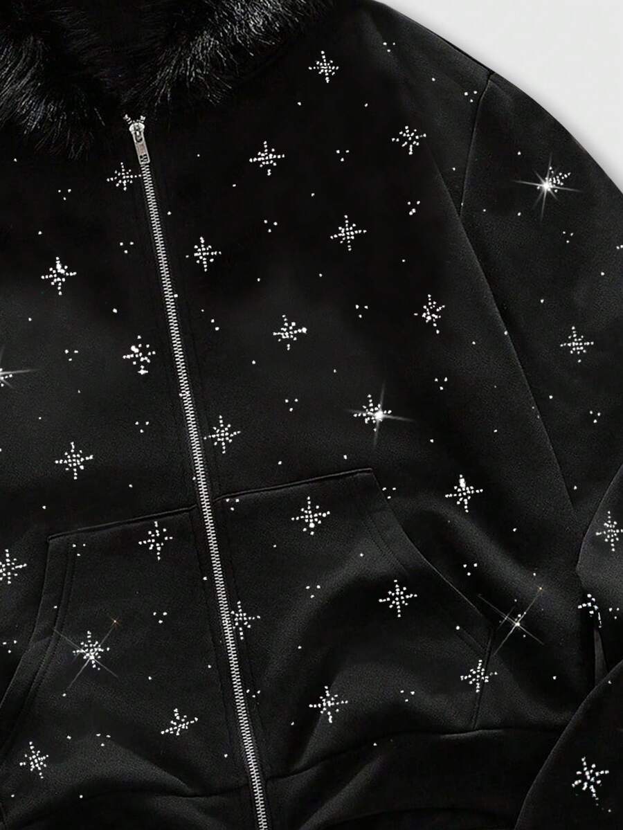 Unisex Couple Rhinestone Embellished Zip-Up Hoodie Sweatshirt