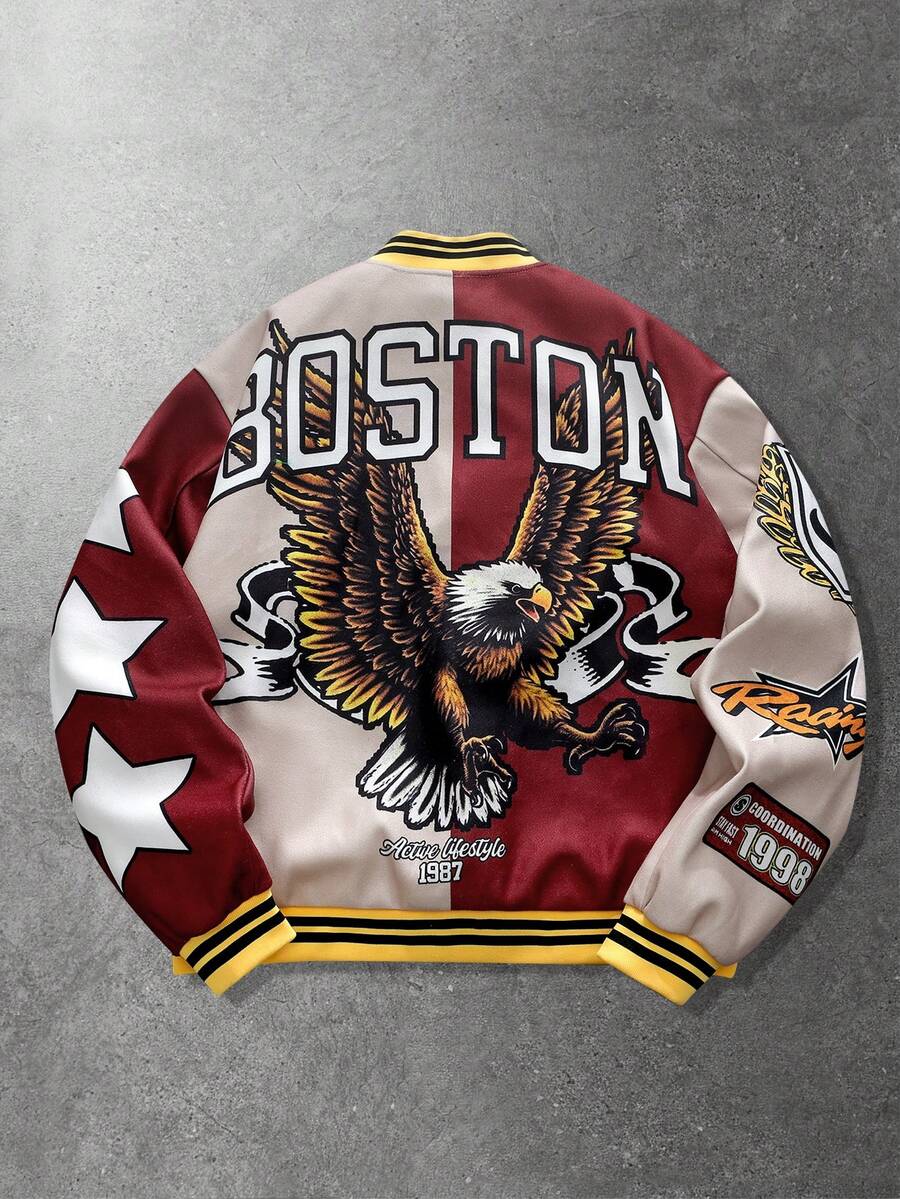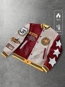 Prep Unisex Patchwork Color Block Street Style Long Sleeve Jacket, Autumn/Winter