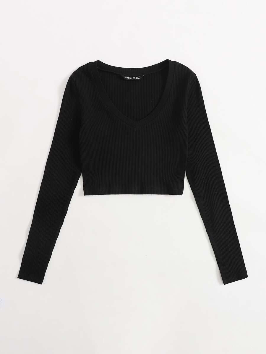 V Neck Ribbed Crop Top