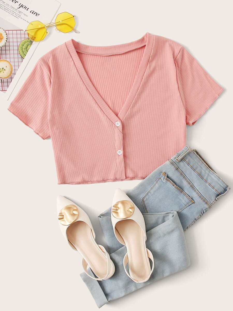 Button Front Pink Crop Top