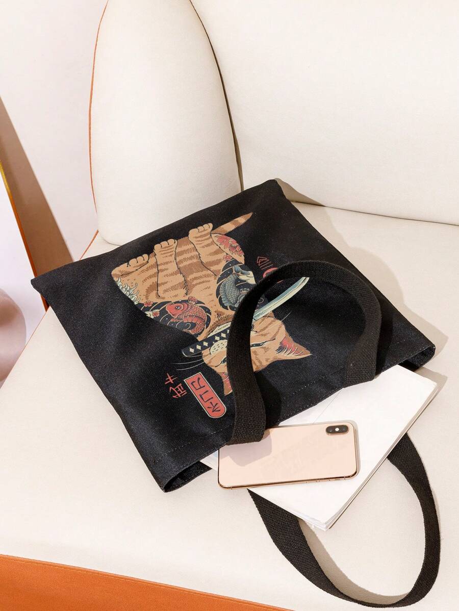 Vincenttrinidadart Anime Small Shopper Bag Casual Cartoon Cat Graphic For Shopping