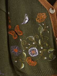 Fairycore Vintage Floral Embroidered Cardigan For Women, Nature-Inspired