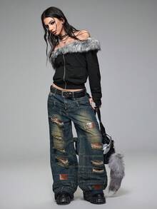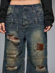 Grunge Punk Vintage Grunge Multi-Waistband Distressed Frayed Hem Super Low Rise Super Low Waist Jeans