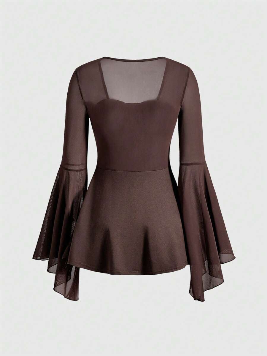 Vintage Hippie Minimalist Sexy Mesh Patchwork Fitted Women Top
