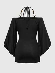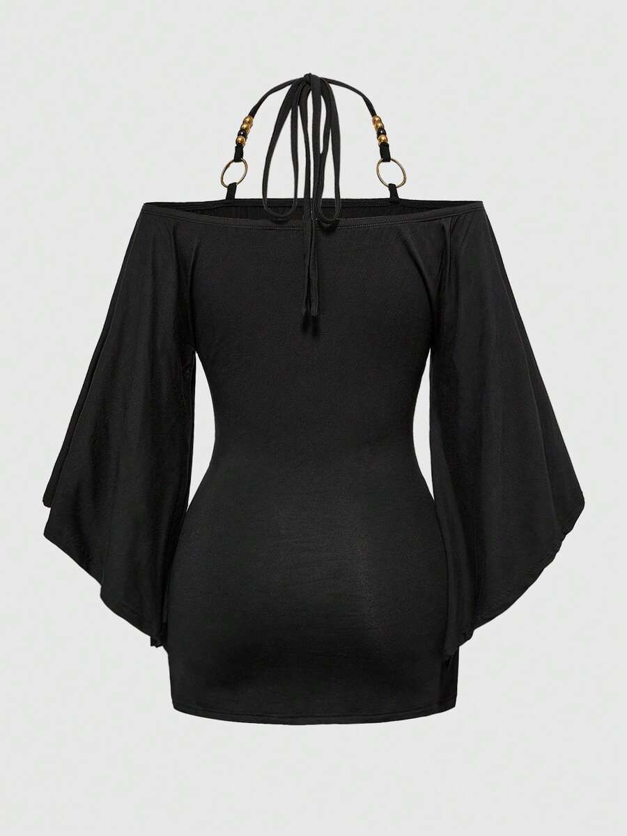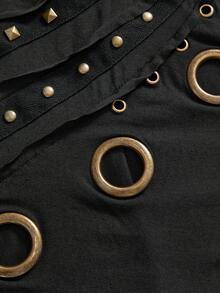 Grunge Punk Vintage Loose Off Shoulder Metal Grommet Decor Batwing Sleeve Women T-Shirt