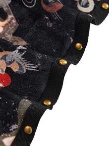 Vintage Neo-Chinese Oriental Buddha Statue Print Sexy Deep V Backless Draped Neck Tank Top