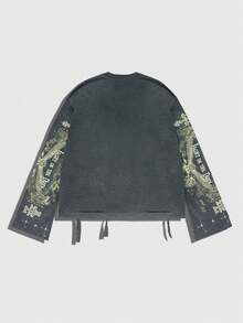 Street Life Vintage Street Style Distressed Saint Graphic Long Sleeve Crew Neck Men's T-Shirt