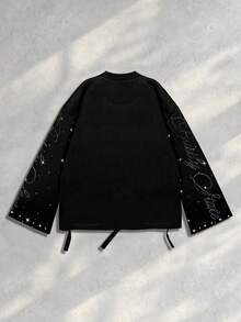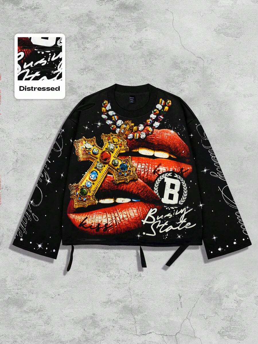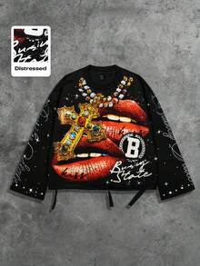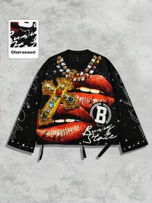 Street Life Vintage Street Style Distressed Saint Graphic Long Sleeve Crew Neck Men T-Shirt, Fall