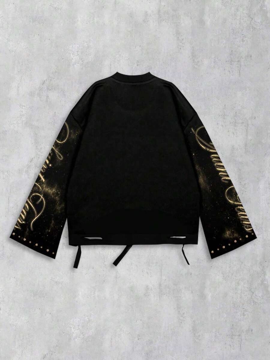 Goth Vintage Street Style Distressed Saint Jesus Graphic Long Sleeve Crew Neck Men's T-Shirt, For Fall