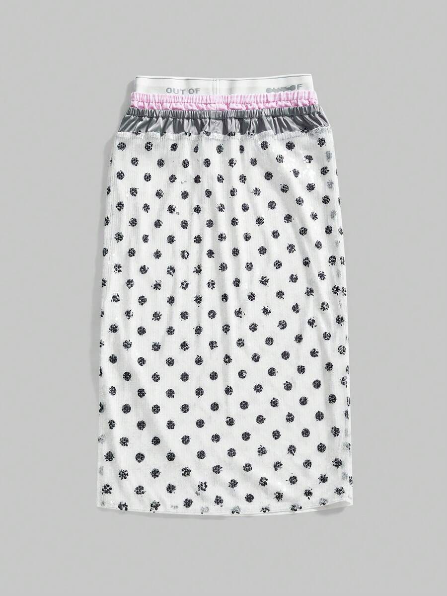 ROMWE Avant Vintage Sweetheart Shiny Polka Dot Sequin Layered Waist Patchwork Bodycon Mini Skirt