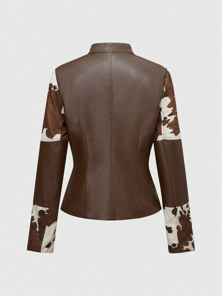 Hippie Vintage Western Animal Print Patchwork PU Fitted Jacket For Women