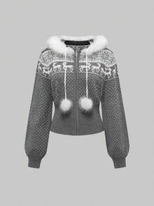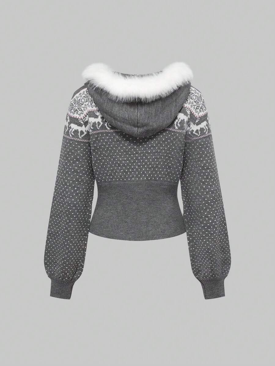 ROMWE Avant Vintage Y2K Fair Isle Pattern Fringe Hem Cropped Fitted Women Hooded Cardigan