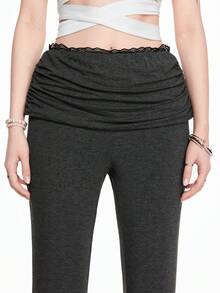 Kawaii Vintage Y2K Low Waist Lace Patchwork Ruched Design Women Skinny Flare Pants, Versatile Homewear