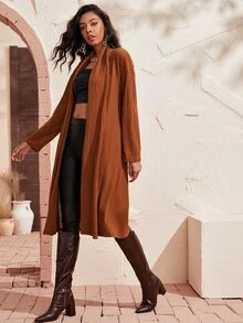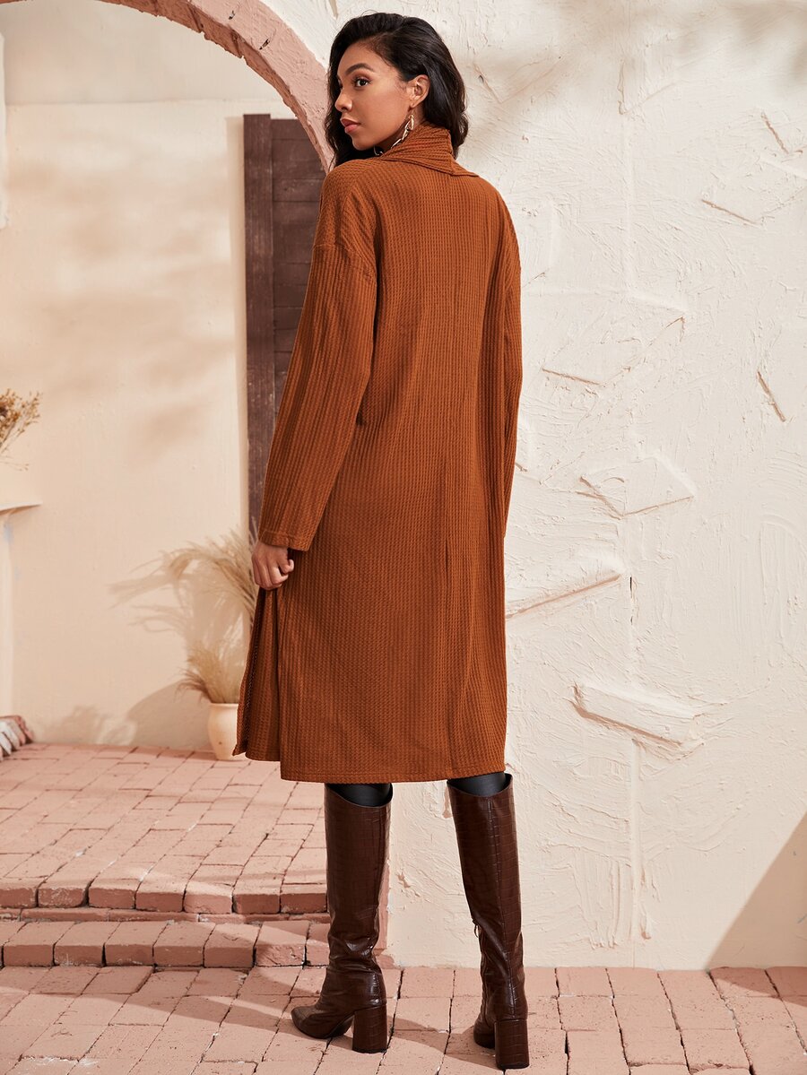 Waffle Knit Open Front Coat