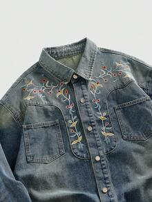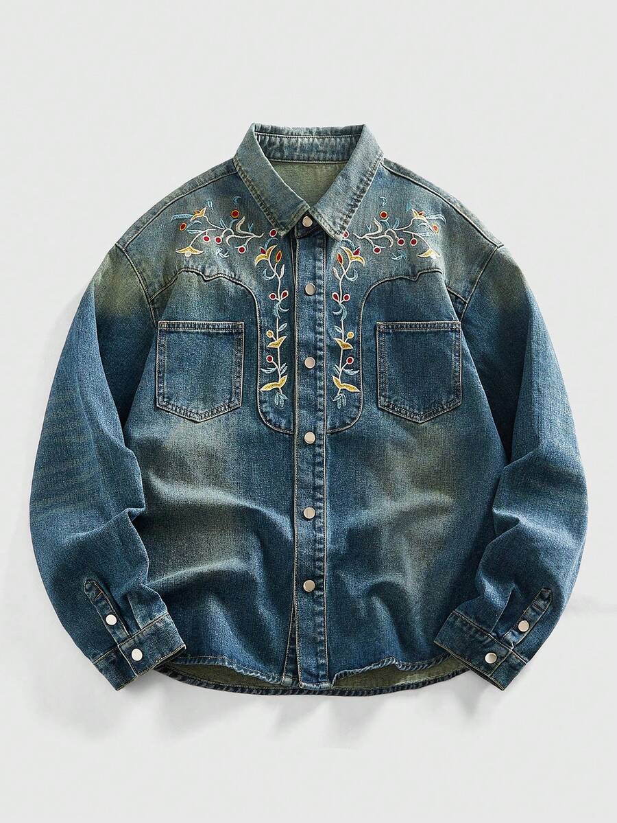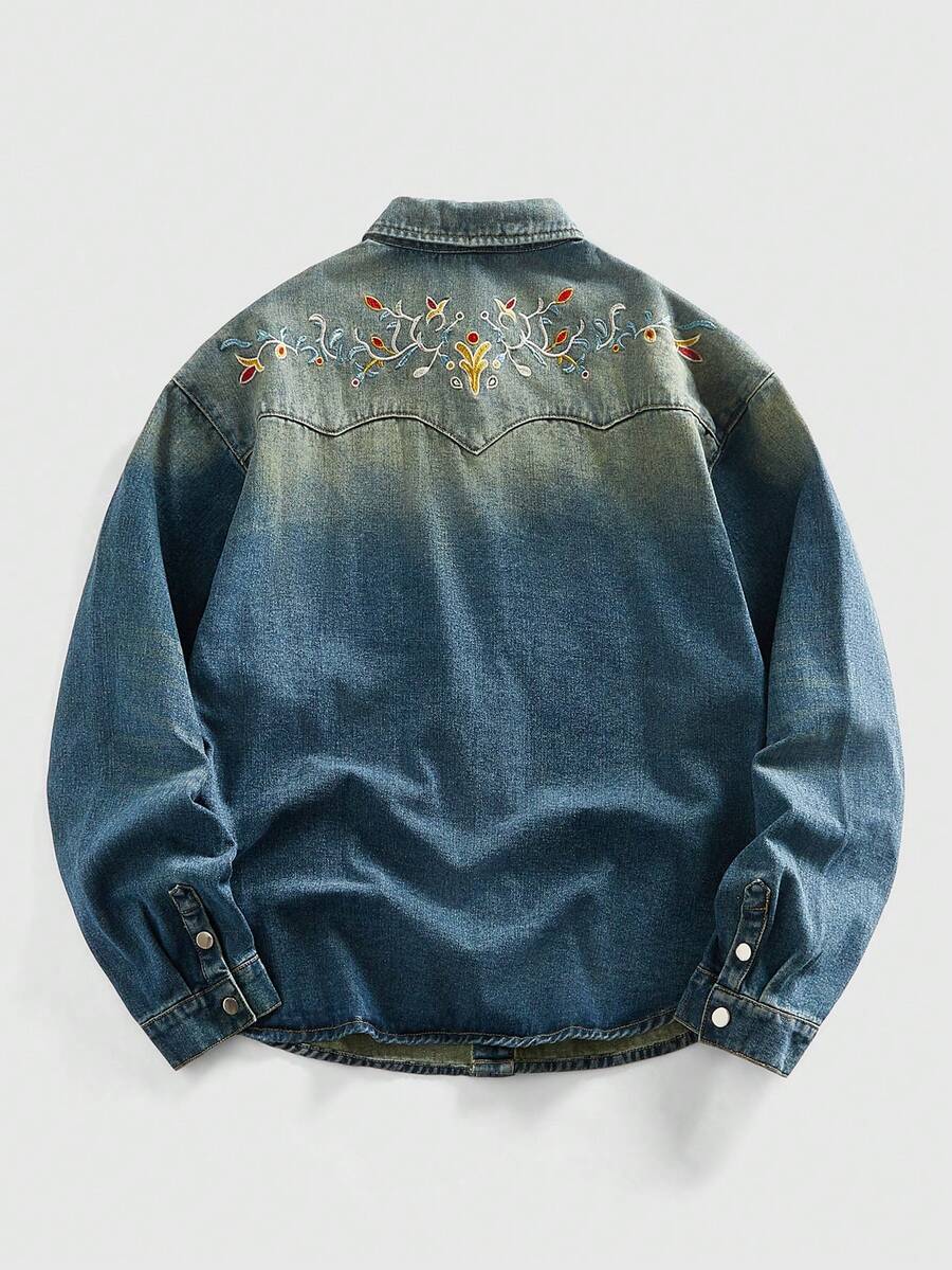 Washed Blue Embroidered Elegant Men's Denim Jacket