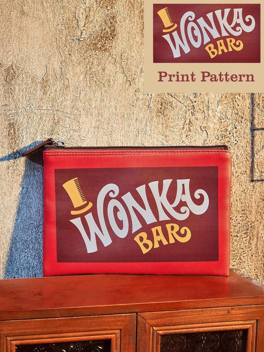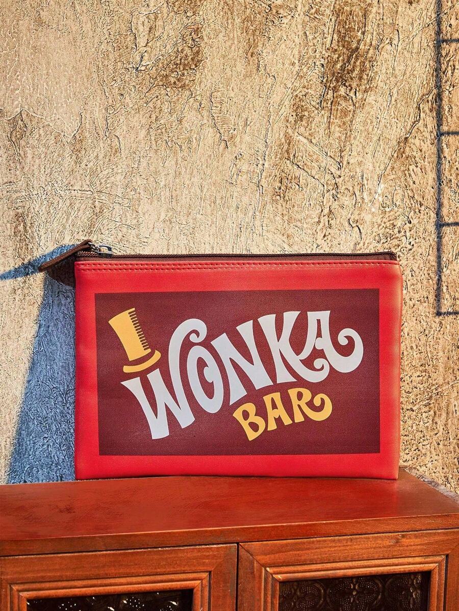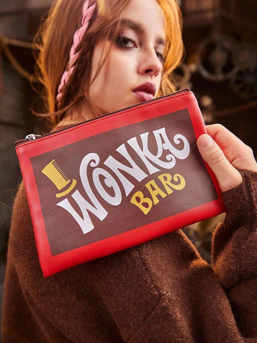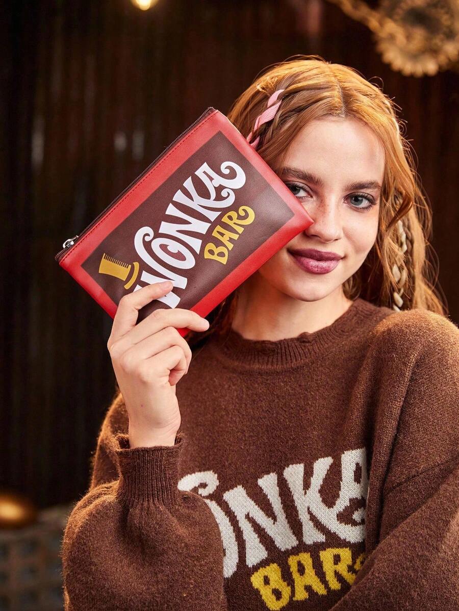 Willy Wonka and the Chocolate Factory X ROMWE Fashionable Colorblock Letter Graphic Portable Cosmetic Organizer Bag