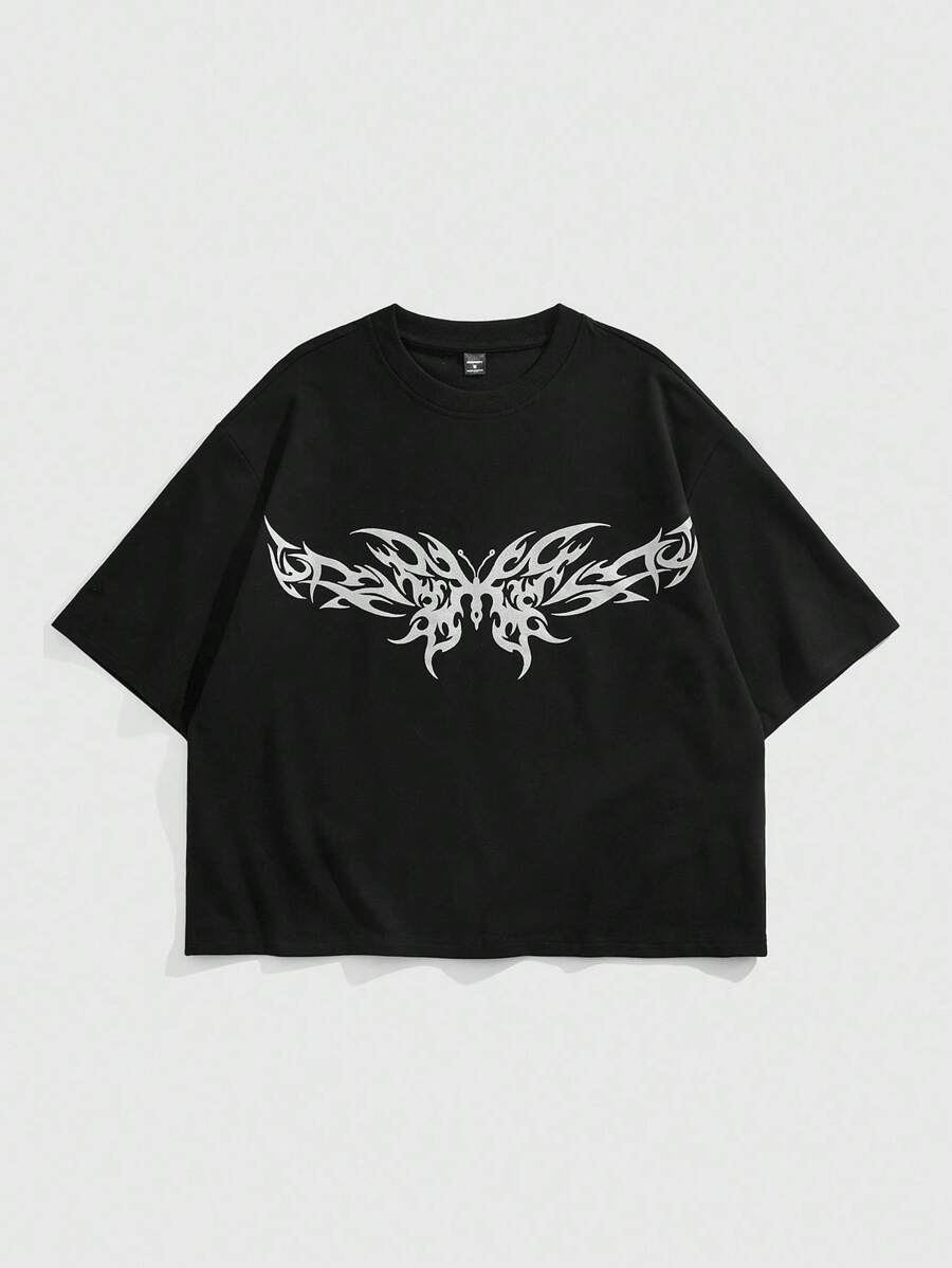 Winx Club X ROMWE Men's Summer Casual Butterfly Print Round Neck Short Sleeve T-Shirt
