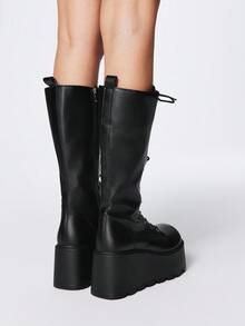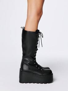 Grunge Punk Women's 2025 Autumn/Winter New Round Toe Lace-Up Punk Platform Thick Sole Boots, Outdoor Fashion Slip-On Over-The-Knee Boots