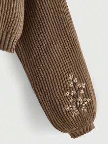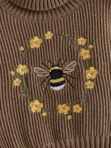 Fairycore Women's Casual Bee Embroidered High Neck Drop Shoulder Long Sleeve Sweater, Autumn/Winter