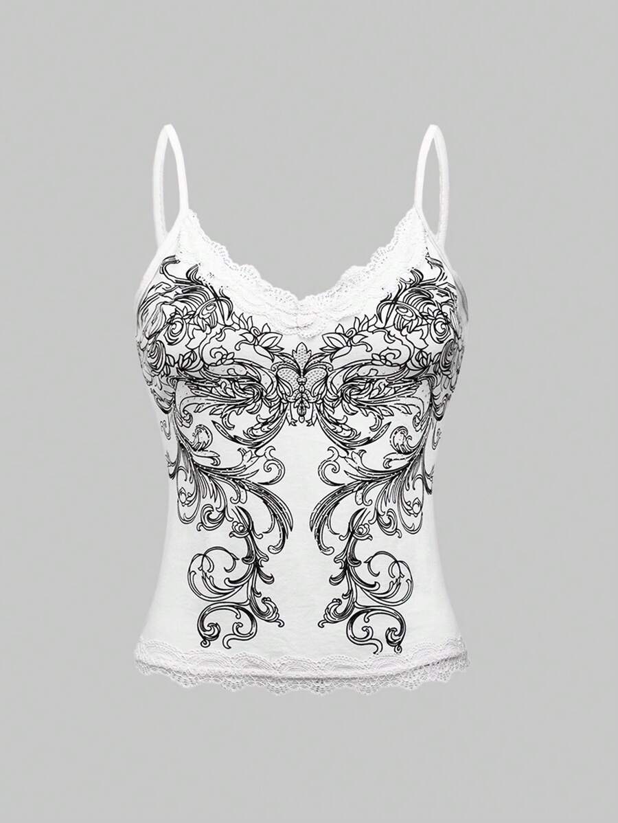 Fairycore Women's Casual Lace Trim Printed Camisole