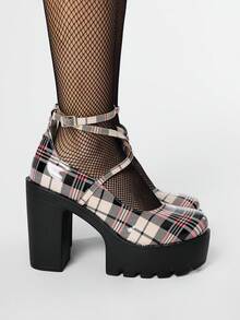 Goth Women's Closed Toe Cross-Strap Mary Jane Shoes, Punk Goth Platform Thick Heel Strap Buckle Strap JK Uniform Shoes, Waterproof Formal Work High Heels