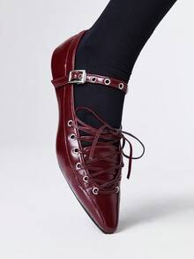Goth Women's Closed Toe Mary Jane Shoes, Punk Goth Rock Style, Pointed Toe, Sexy Criss-Cross Strap, Formal Work Flat Shoes, Halloween