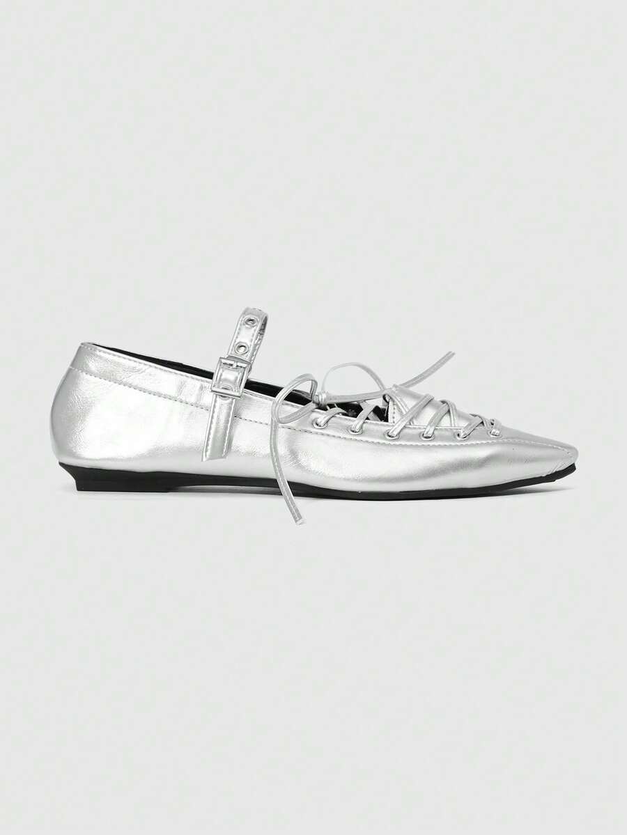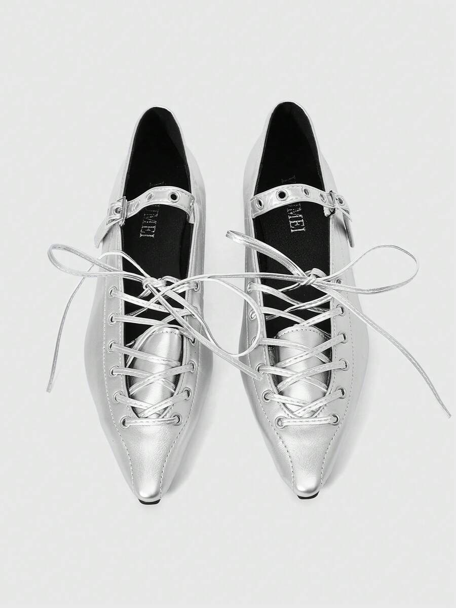 Goth Women's Closed Toe Mary Jane Shoes, Punk Goth Rock Style, Pointed Toe, Sexy Criss-Cross Strap, Formal Work Flat Shoes