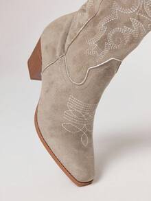 Fairycore Women's Cowgirl Boots, Slip-On Embroidery Detail Western Boots, Suede Outdoor Fashion Casual Mid-Calf Riding Boots