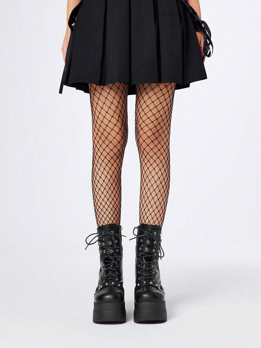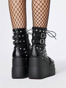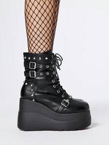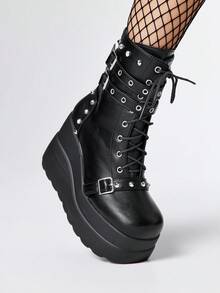 Grunge Punk Women's Dark Punk Goth Lace-Up Platform Thick Sole Motorcycle Boots, Leather Riding Knee-High Boots And Ankle Boots