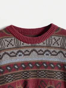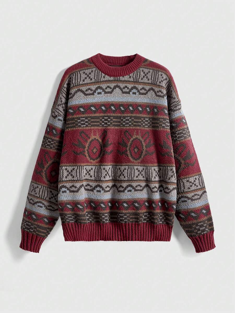 Fairycore Women's Geometric Pattern Round Neck Drop Shoulder Long Sleeve Casual Loose Pullover Sweater, Autumn/Winter