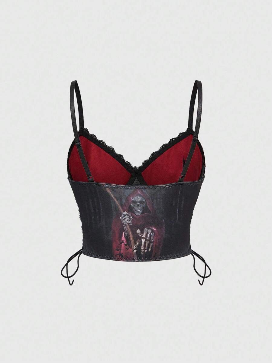 Women's Gothic Horror Pattern Underwire Lace-Up Bra