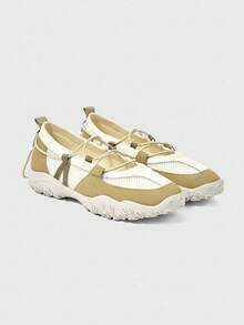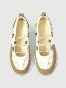 Women's Mesh Patchwork Criss-Cross Outdoor Style Round Toe Sneakers, Lightweight Thick Sole, Commuter & Sporty