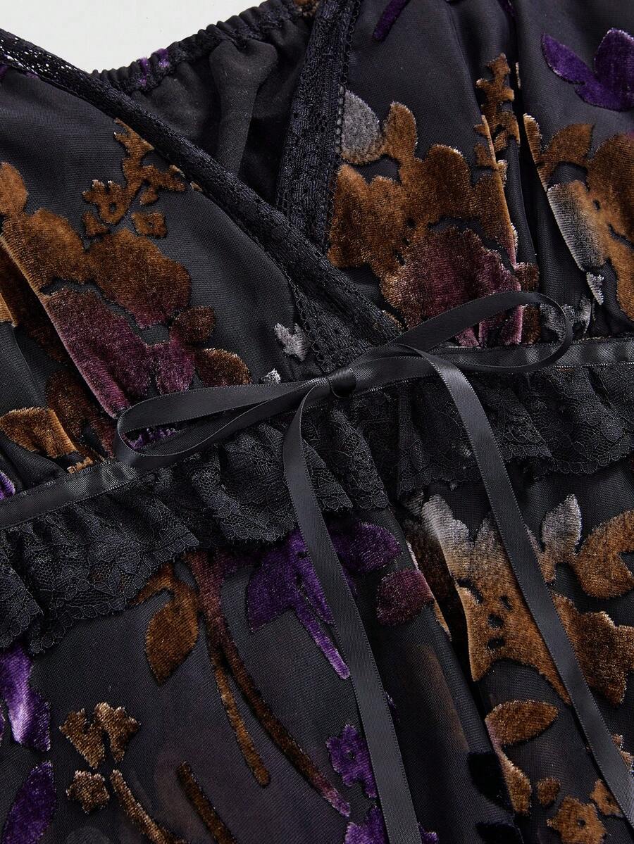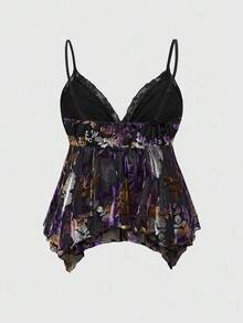 Hippie Women's Millennium Hippie Retro Flocked Floral Pattern Ruched Asymmetrical Hem Layered Camisole