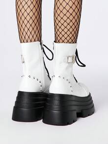 Grunge Punk Women's Multi-Layer Platform Round Toe Punk PU Rivet Mid-Calf Boots, Suitable For Daily, Street, Punk, Campus Wear