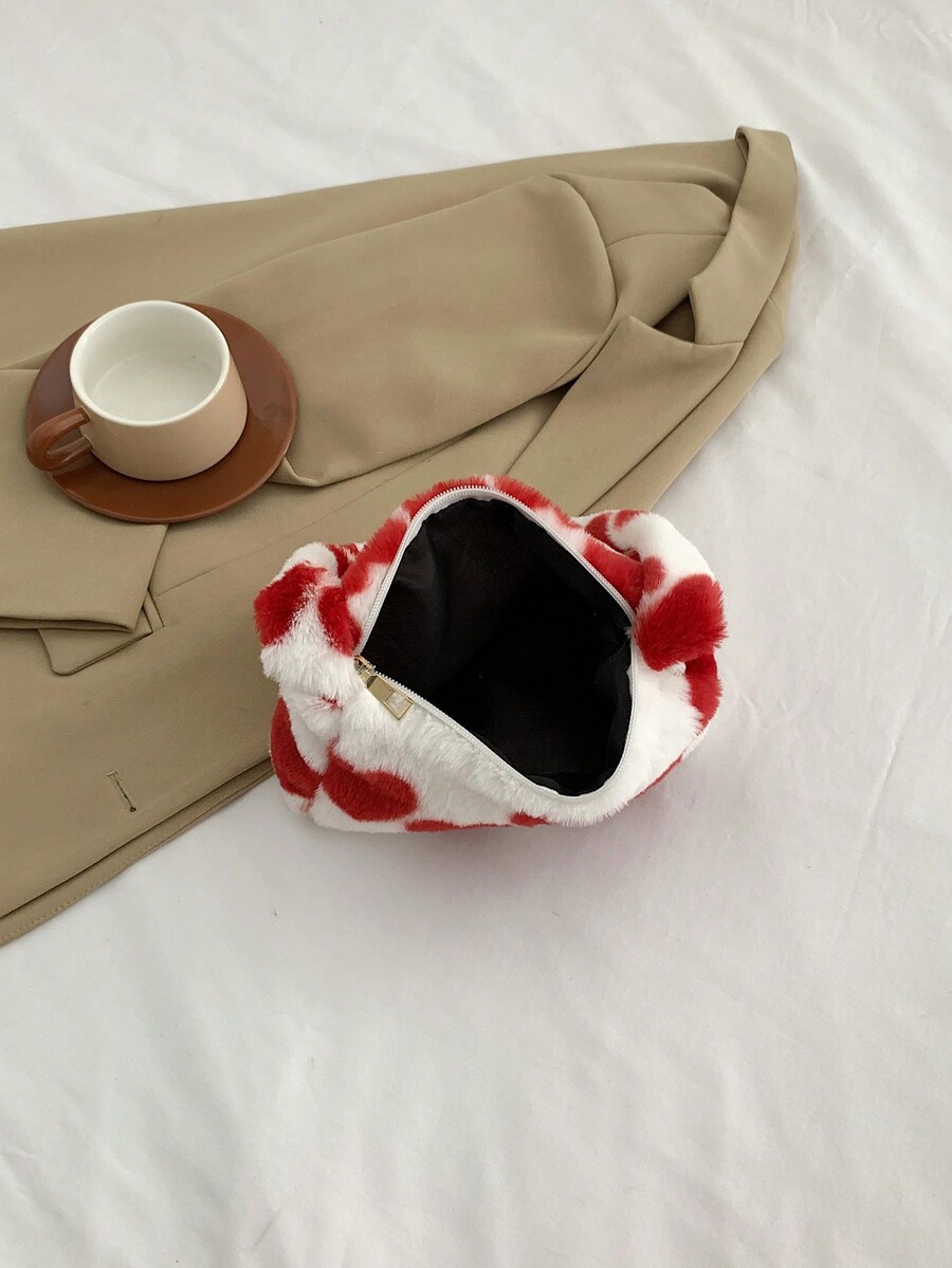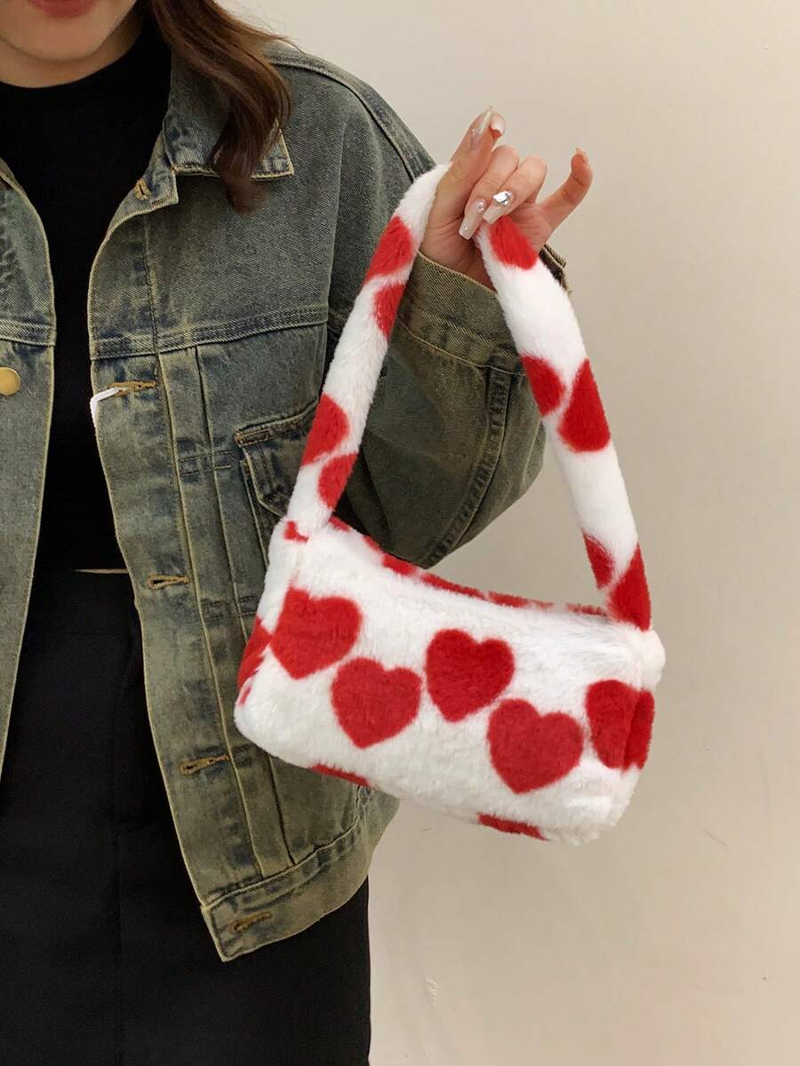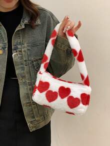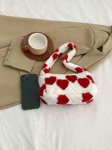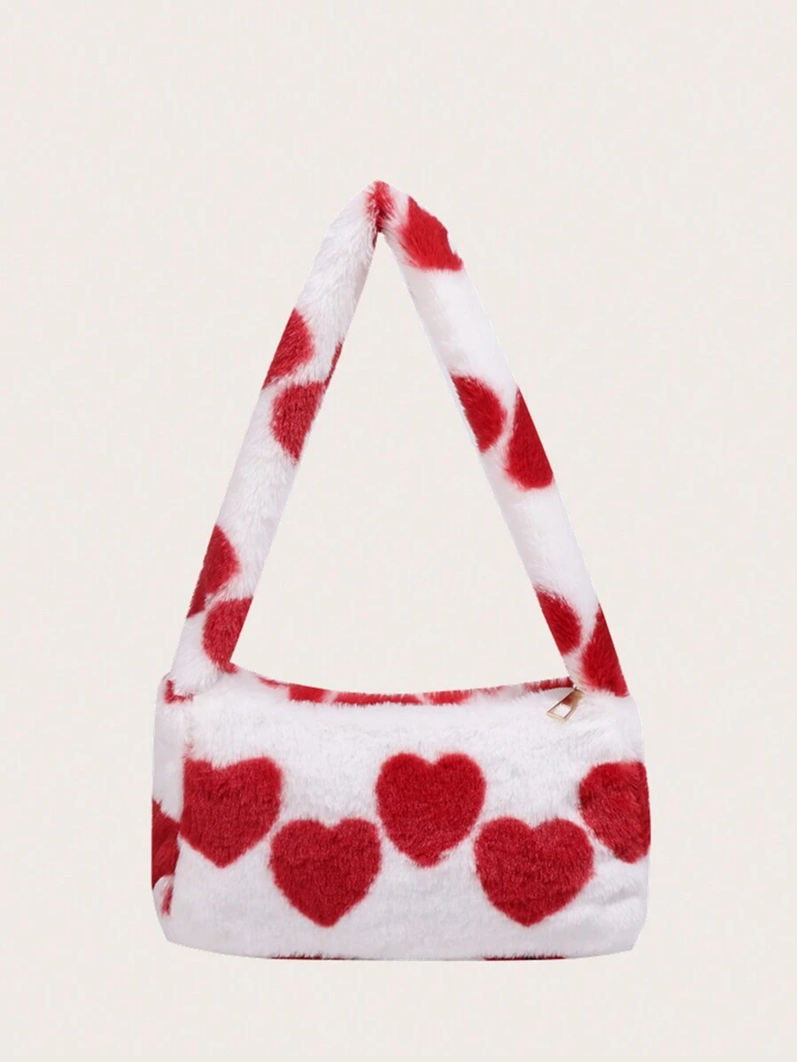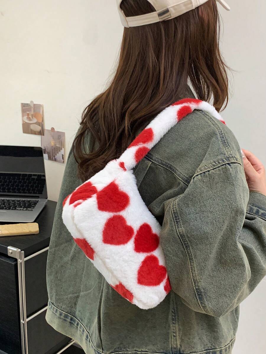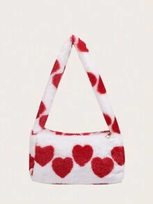 Kawaii Women's Plush Heart Print Shoulder Bag