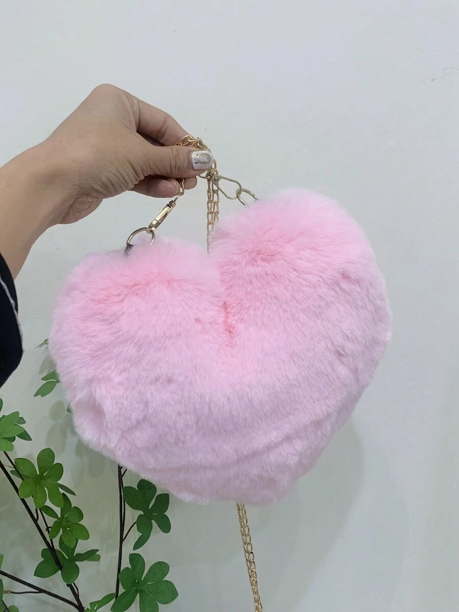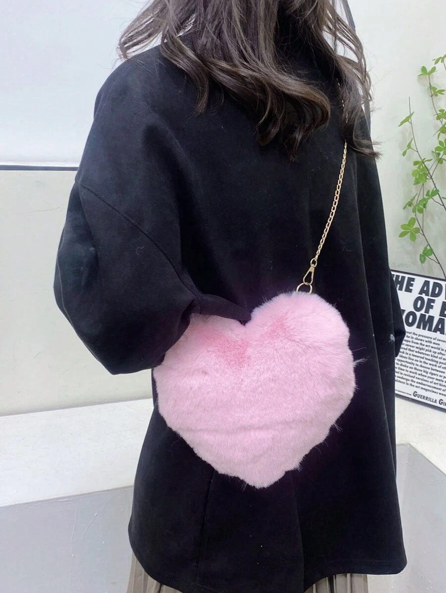Kawaii Women's Plush Heart Shape Crossbody Bag
