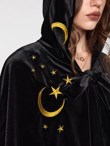 EDITION Women's Regular Fit Jacket With Moon & Star Embroidery, Suitable For Halloween