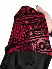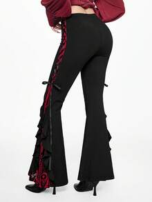 Goth Women's Retro Elegant Gothic Ruffle Contrast Color Jacquard Flocked Tie-Up Flare Pants, Halloween