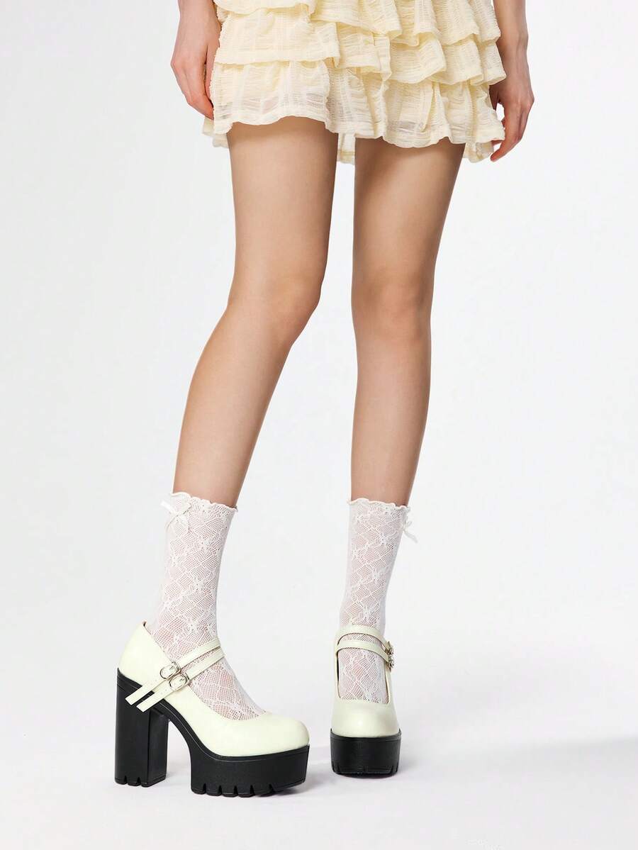 Goth Women's Sexy Thick Sole Chunky Heel Pumps, Spring/Autumn Fashion Solid Color Metal Double Strap Buckle High Heel Mary Jane Shoes