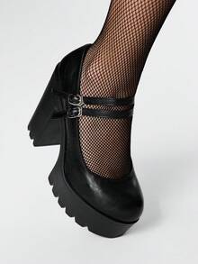 Goth Women's Sexy Thick Sole Platform Pumps, Spring/Autumn Fashion Solid Color Metal Double Strap Buckle High Heel Mary Jane Shoes