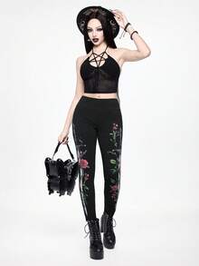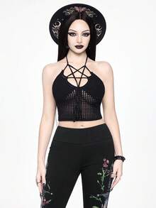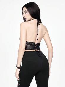 Goth Women's Solid Color Front Tie Hollow Out Casual Halter Knit Top