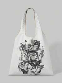 Fairycore Butterfly & Leaf Print Fashion Portable Gothic Style Large Capacity Women Tote Bag