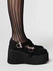 Grunge Punk Women's Thick Sole Platform Round Toe Double Strap Metal Buckle Casual Loafers, Punk Gothic Style Low-Cut Party & Work Shoes, Halloween