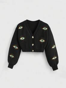 Hippie Women's Vintage Embroidered Eye Totem Cardigan