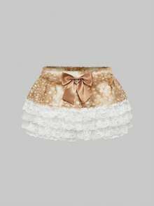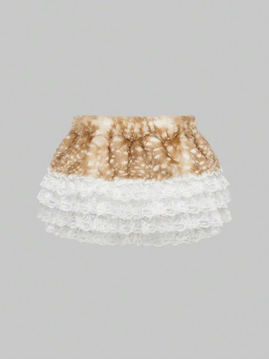 ROMWE Avant Women's Vintage Forest Style Mori Kei Cottagecore Retro Deer Pattern Fluffy Peter Pan Collar Lace Patchwork Ribbon Bow Decor A-Line Skirt