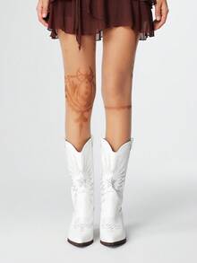 Fairycore Women's White Pointed Toe Chunky Heel Embroidered Western Boots, Leather, New Autumn/Winter Outdoor Fashion Mid-Calf Boots