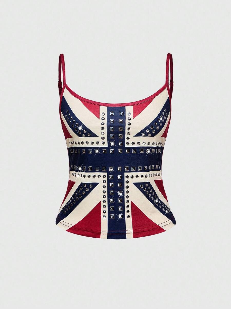 Grunge Punk Women's Y2K Vintage UK Flag Print Rhinestone Rivet Camisole Top