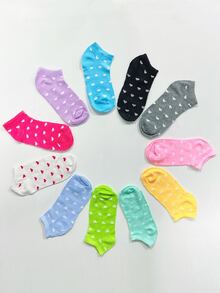 10pairs Women Random Color Heart Pattern Ankle Socks For Summer